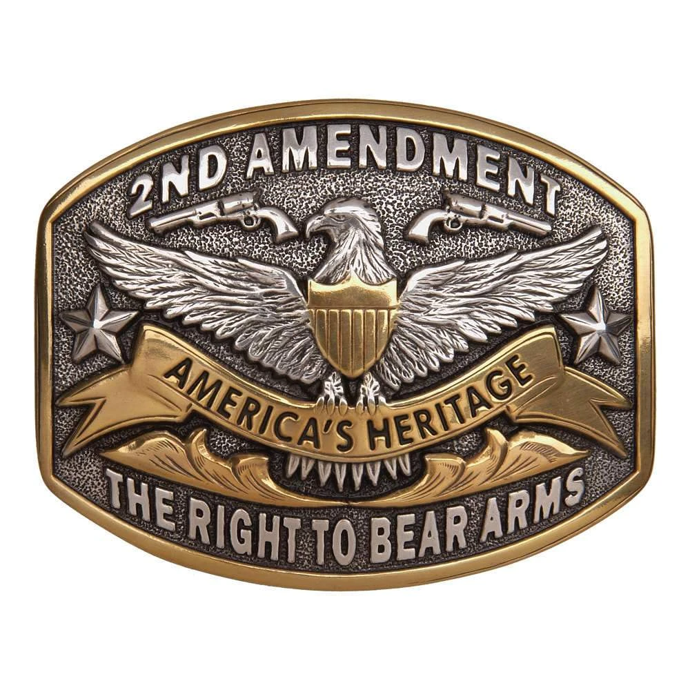 American eagle with stars and guns design buckle.