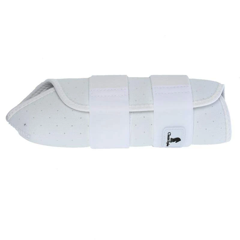 A great boot for the show ring with a close, clean fit and no bulk. Protects splint and sesamoid area and provides support to tendons. Leather splint pad with a shock absorbing nitrate inner lining provides splint protection. Leather fetlock guard is slightly padded to provide more protection against wear and crossfiring. Three hook-and-loop straps make this an easy boot to put on and take off.