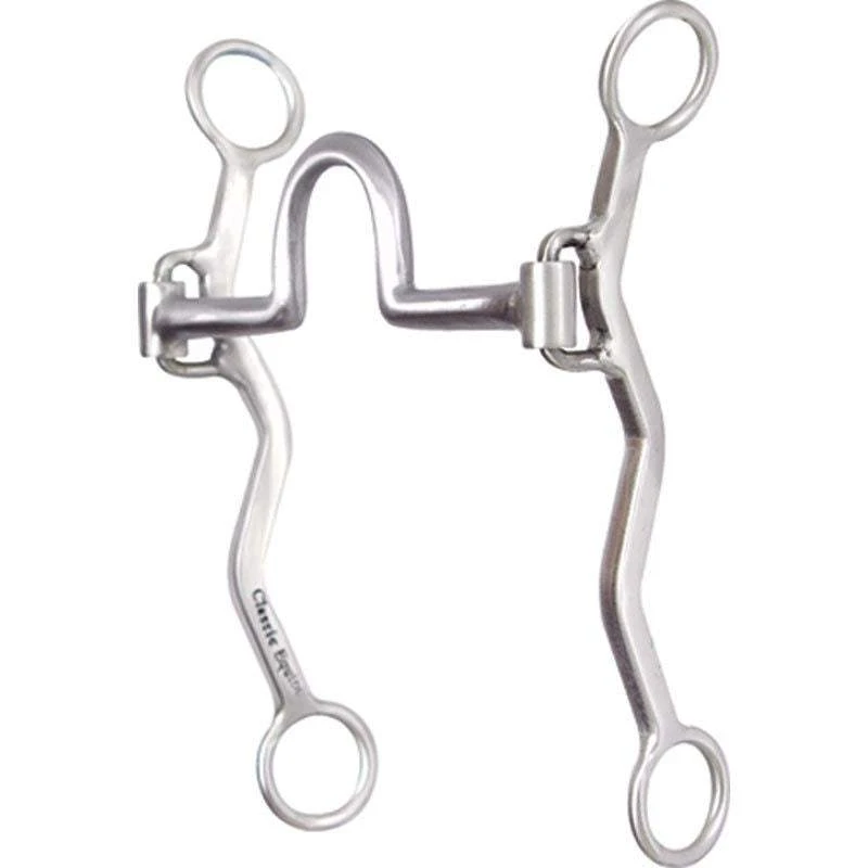 Encourages a horse to rate quickly during a run. The port reaches the top of the mouth and signals the horse to flex at the poll quickly, bringing him into your hand and rate. Preferred on horses that are aggressive during the run to maintain control Rickey Green Bits by Classic Equine. Classic Equine proudly introduces Rickey Green’s signature bit line. Rickey’s bits were designed for training, practice or competition and feature a loose-cheek shank to encourage lateral flexion and will allow the rider to control the horse’s nose.
