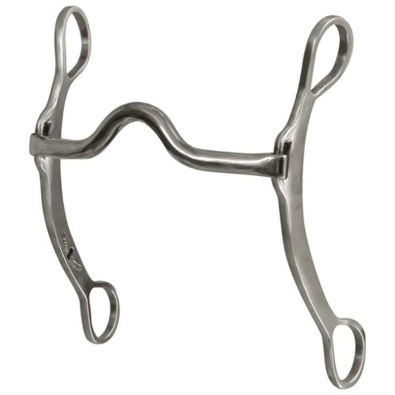 Classic Equine Shoulder Holder Bit Low Port. This is a great bit for elevating a horse’s shoulder going into a turn. It aids the rider in holding a horse’s shoulder steady, maintaining a more optimal body position around a barrel. Very fair and forgiving, the mouthpiece is set forward on the shank, which helps increase lift and lateral movement. This bit helps to maintain forward motion on horses that anticipate a turn. The Shoulder Holder is also a great tool for retraining man-made habits in aged horses.