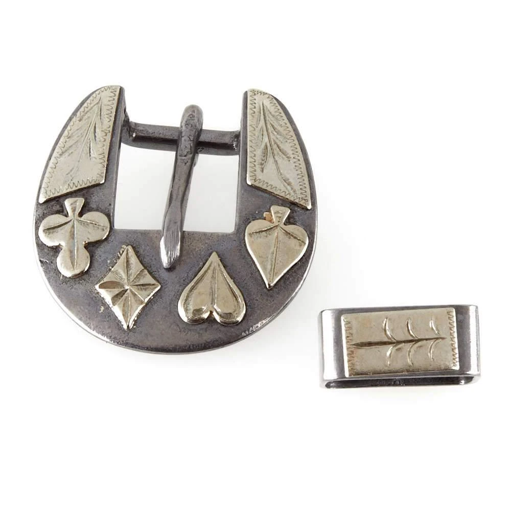3/4 Inch CowPuncher Card Suit Floral Cart Buckle and Keeper