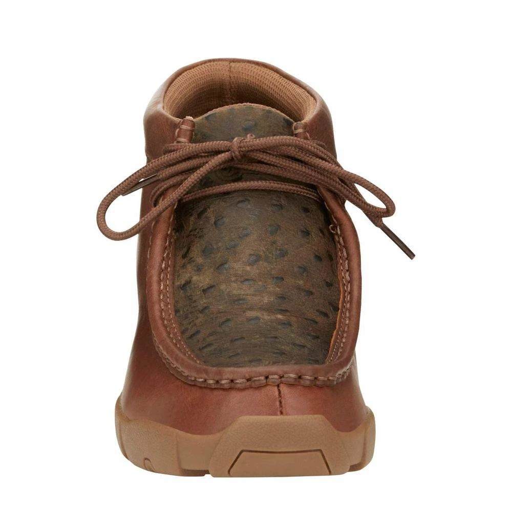 This is a casual Justin Boot Company has given this a kick back and relax look and feel. it is crafted with care and made for comfort, the rugged brown leather with ostrich print exterior gives this boot a lived-in look. The woven polyester laces are durable for everyday wear and tear and its traditional moccasin toe provides a relaxed fit. The removable orthotic insole allows for added cusion and support . The rubber outsole guarantees traction on various surfaces and extended wear. SE239