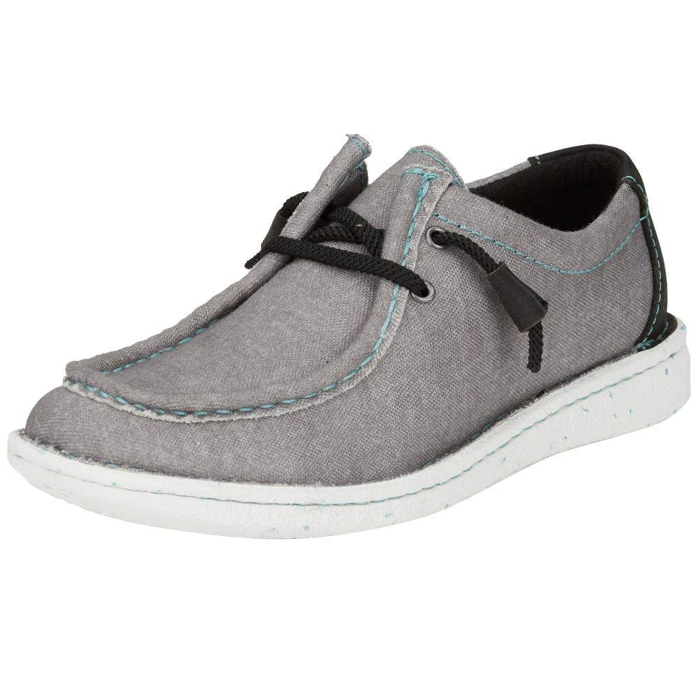 The Women’s Hazer in a Grey canvas from the Justin Casuals Collection features a laid-back moc-toe styling with a cushioned insole.