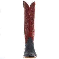 Olathe Boot Company Men`s Black Wyoming Reverse 16in Deep Red Navajo Bison Dog Top Cutter Toe Boot