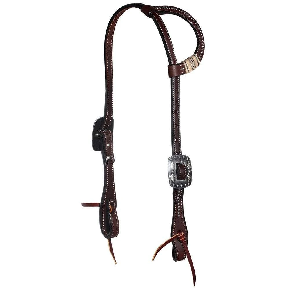 Update your tack room with this Professional’s Choice Headstall. This headstall is natural/black with stylish arrow buckles.This is a single ear headstall.
