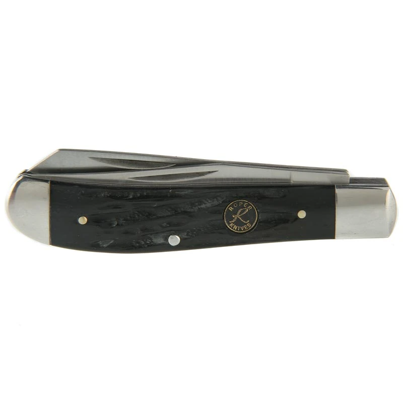 The Roper Knives Black Bone Trapper Knife features a jet black jigged bone handle and measures 3 1/2″ Closed.
