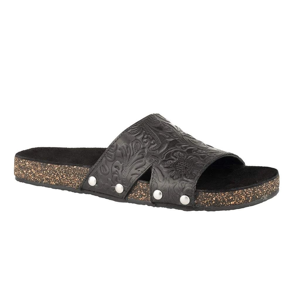 These black floral embossed leather slides are the perfect shoes to pair with your adorable summer outfits!