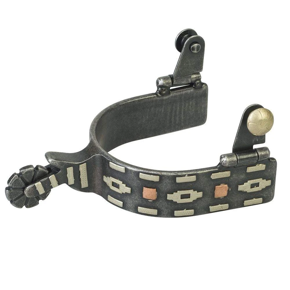 These spurs were designed with the right weight and balance so they hang properly on the boot without riding up. Features on-trend German silver engraved trim.