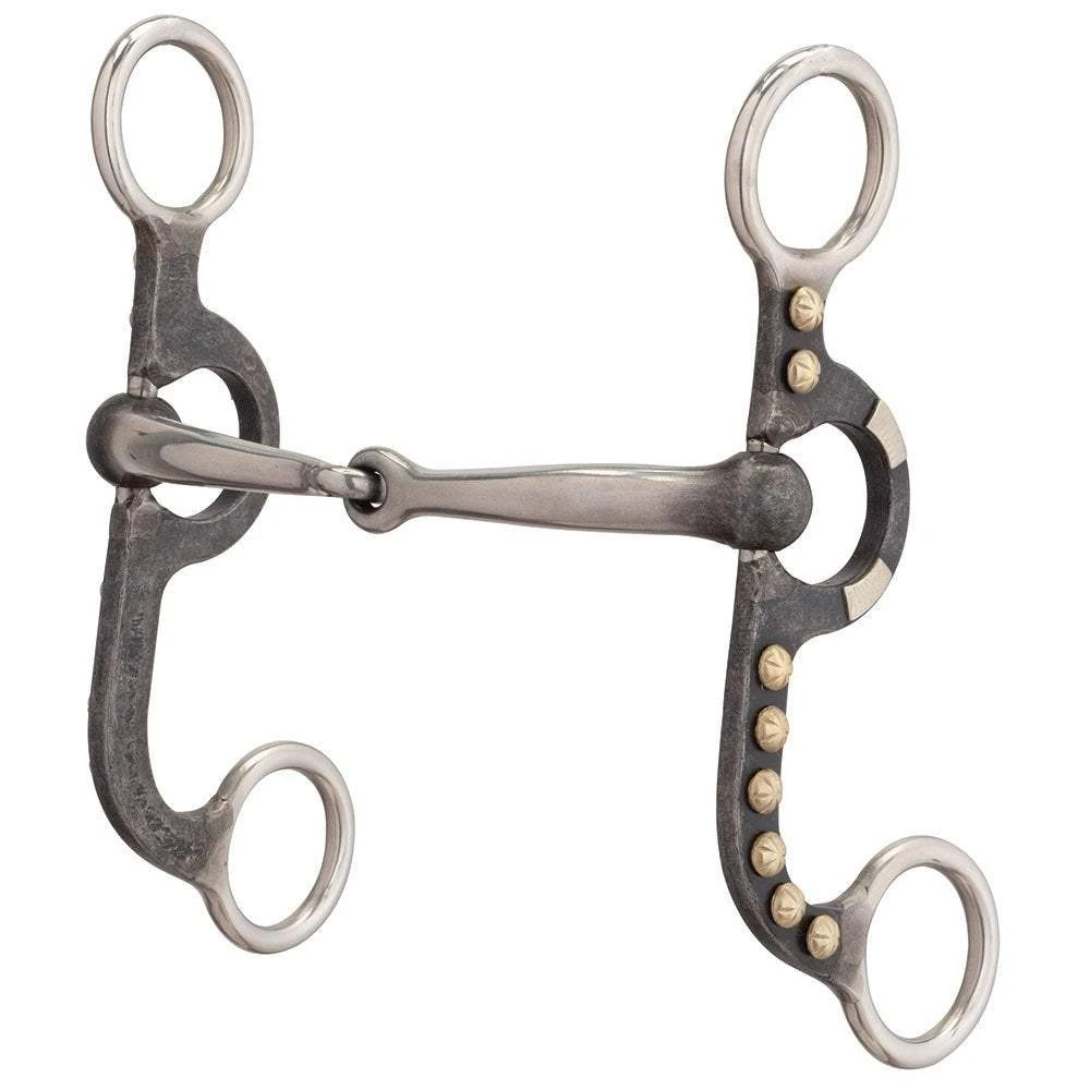 This pony it features a broken snaffle mouthpiece that is 4 5/8″ wide and 6″ cheeks that are trimmed in German Silver.